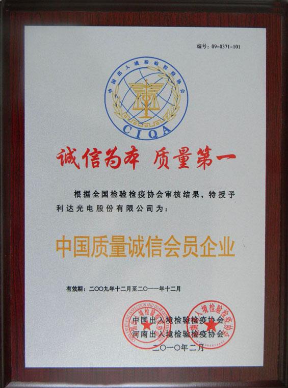 利達(dá)光電股份有限公司榮獲首批“中國質(zhì)量誠信會員企業(yè)”榮譽(yù)稱號