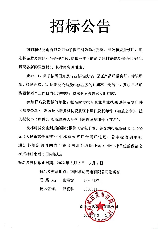 消防器材充裝及維修業(yè)務(wù)合作單位招標(biāo)